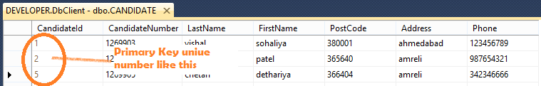 Primary keys must contain unique values. It is normal to just use running numbers,like 1,2,3,4,5,…as values is Primary Key column.IDENTITY(1,1) means the first value will be 1 and then it will increment by 1.